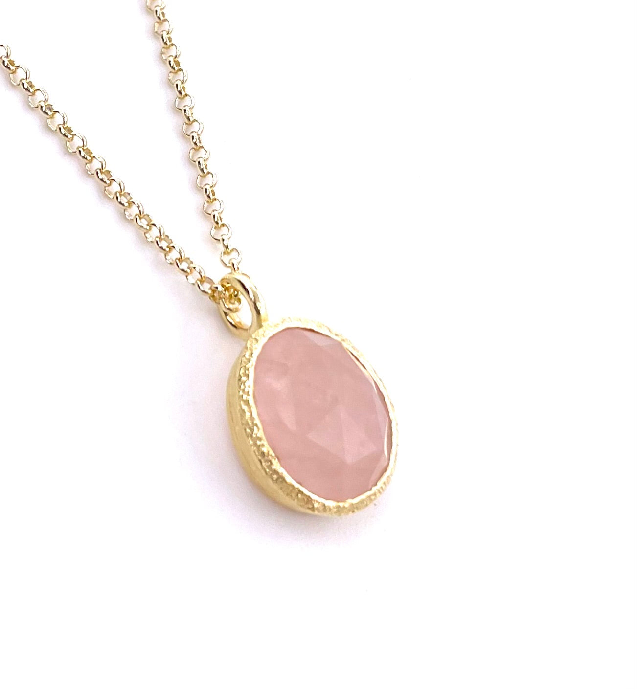 This sweet rose quartz pendant and chain are made of sterling silver with an 18K vermeil. It comes from the Shade Collection by Jorge Revilla Spain and has a retail price of $170.00
