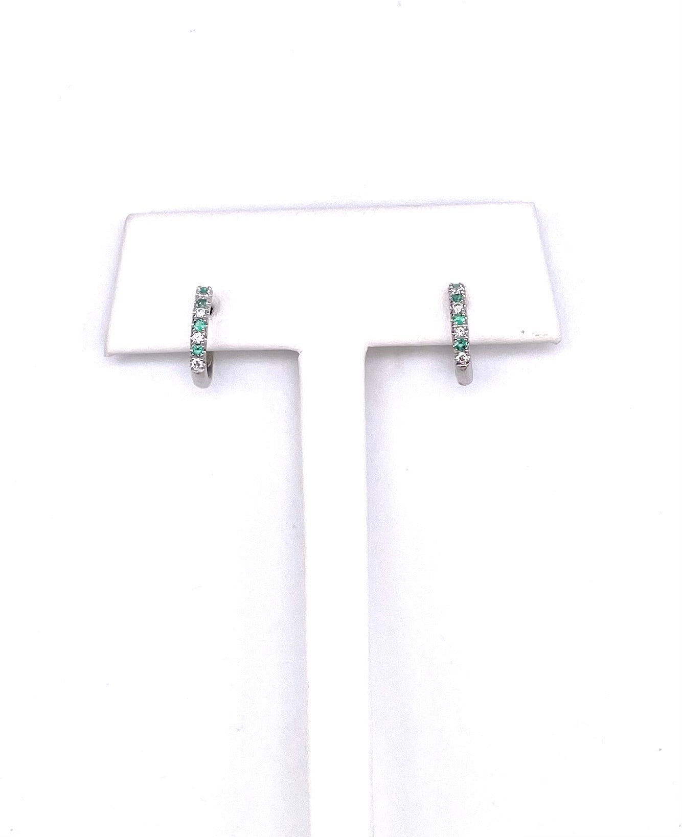 These sweet little earrings in 14K white gold feature .09 carats of diamonds and .06 carats of emeralds. These hoop earrings have a retail price of $1425.00
