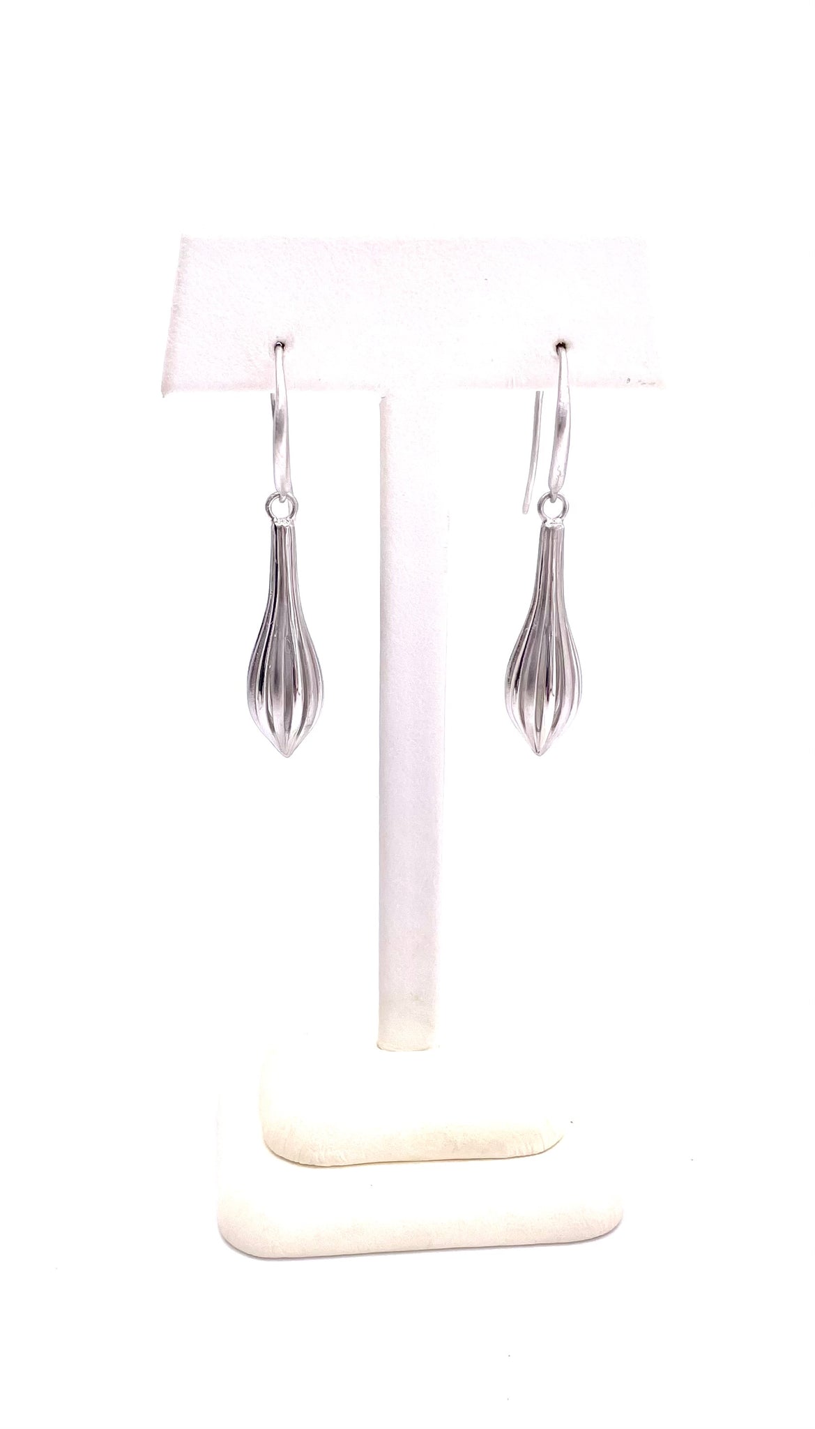 These long dangle earrings in sterling silver have a hook design for comfort and style.  They come from the Amphora Collection by Jorge Revilla Spain and have a retail price of $350.00