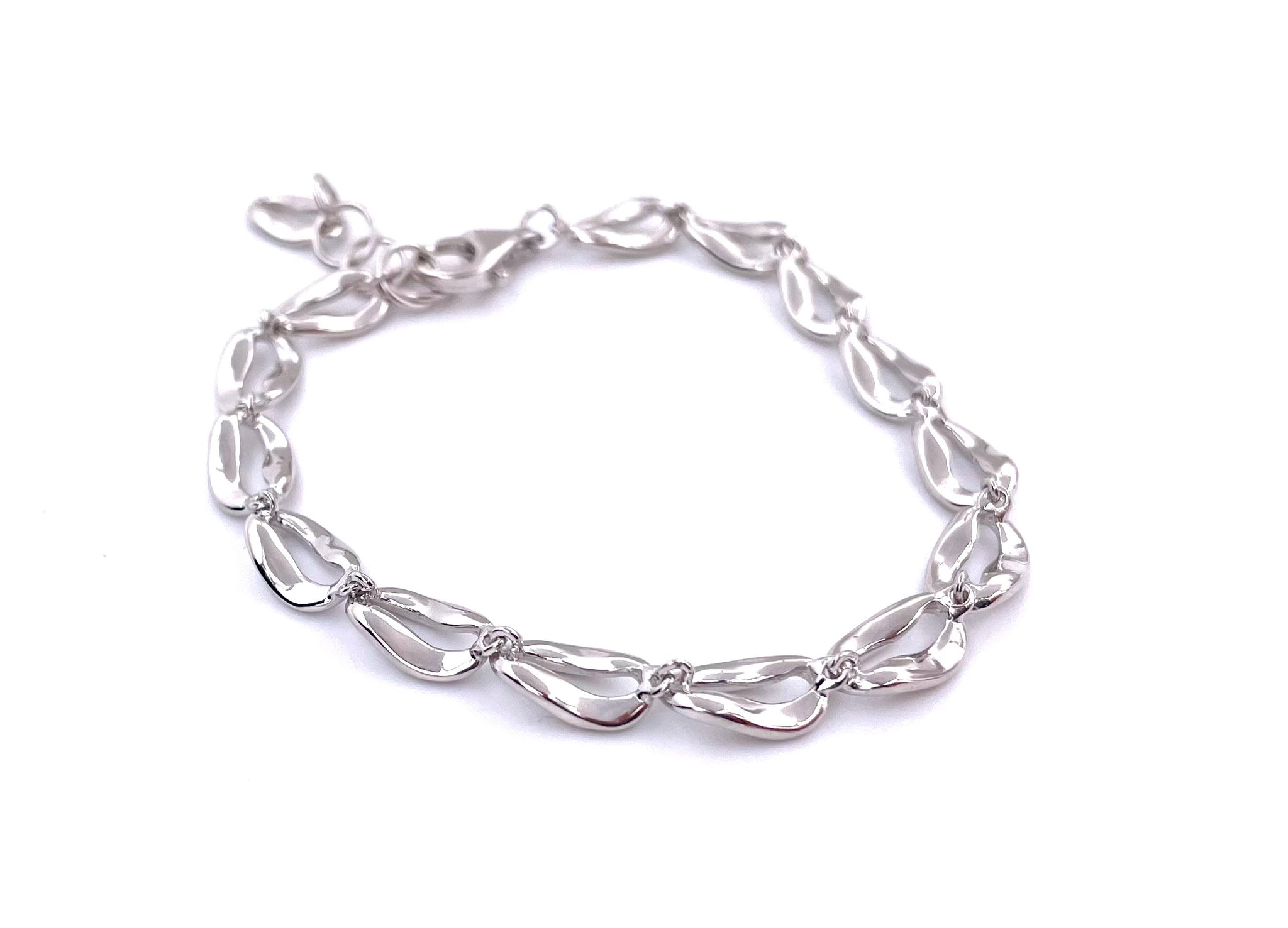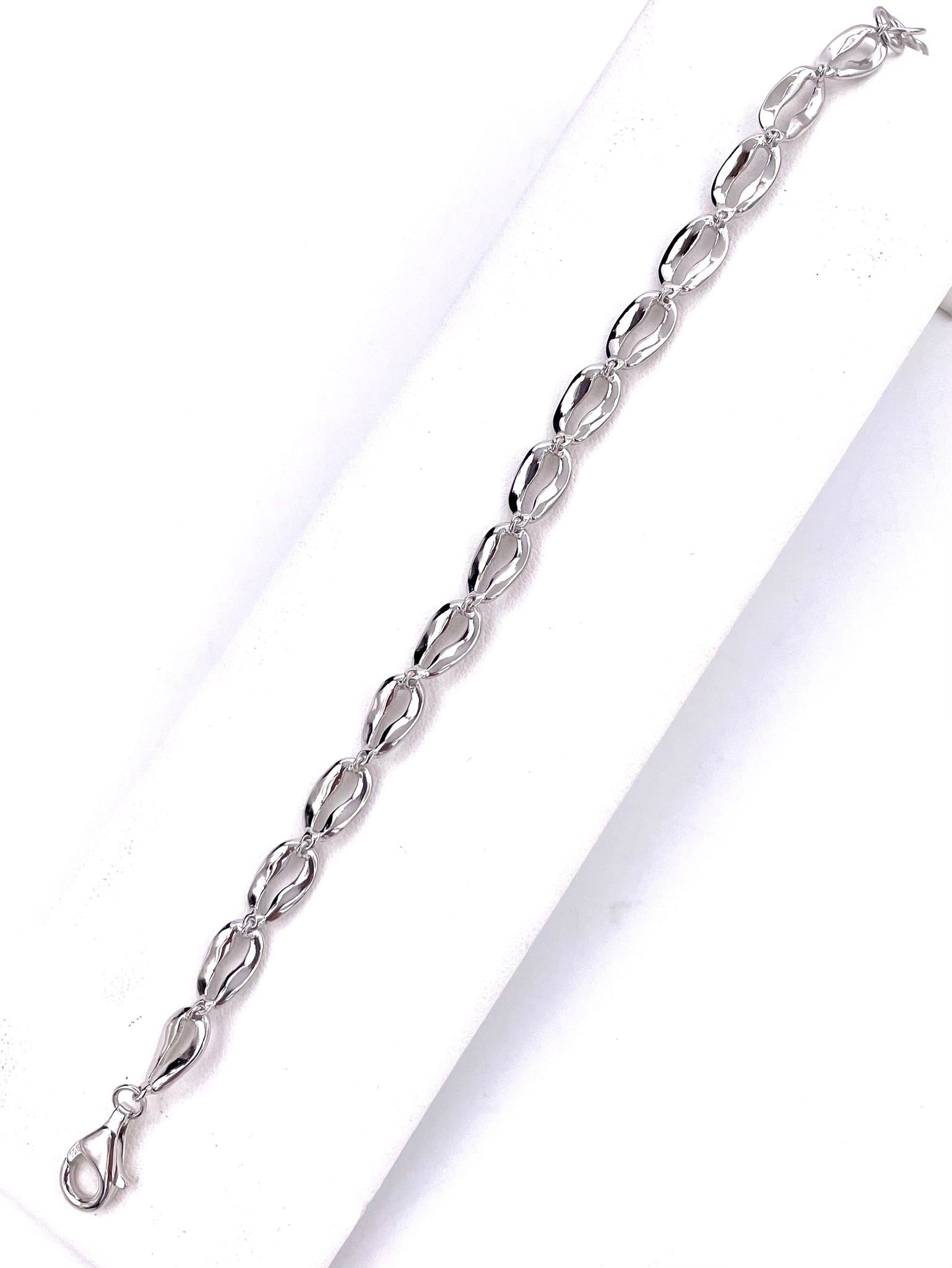This brightly polished bracelet comes from the Bean Collection by Jorge Revilla Spain. It is made with sterling silver and has an adjustable length. Retail price $340.00