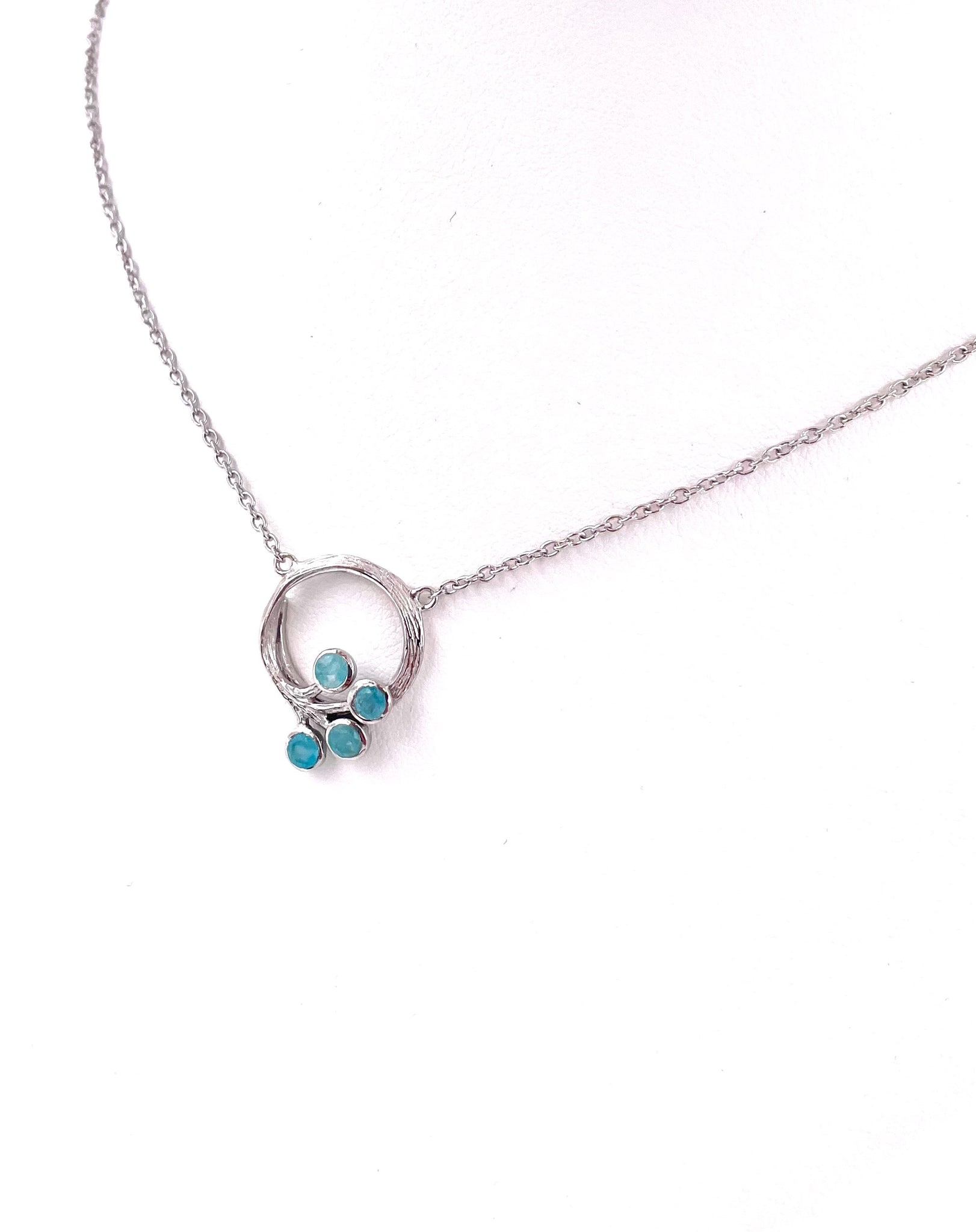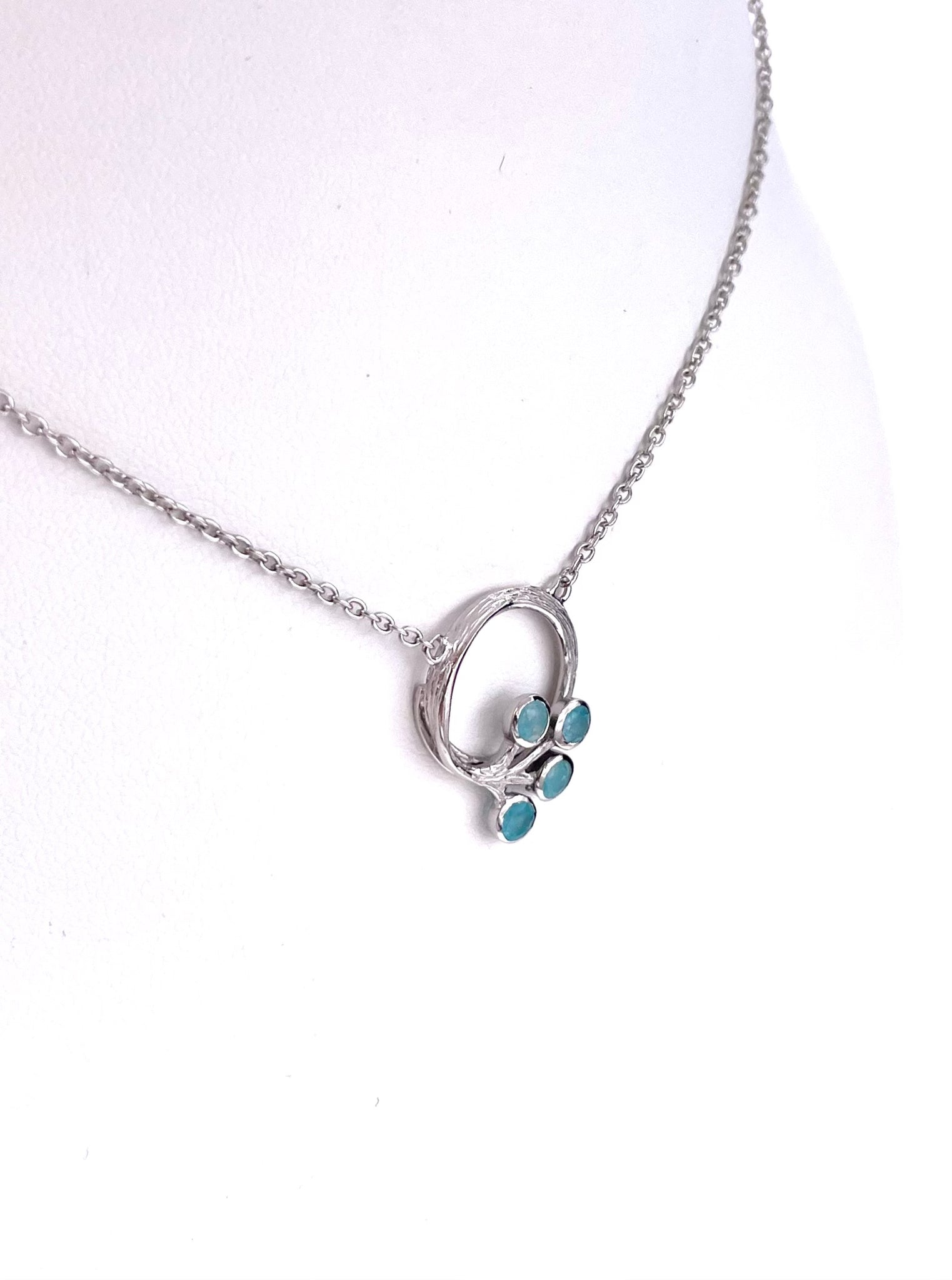 This sterling silver necklace features apatite stones and comes from the Peacock Collection by Jorge Revilla Spain. Retail price $200.00