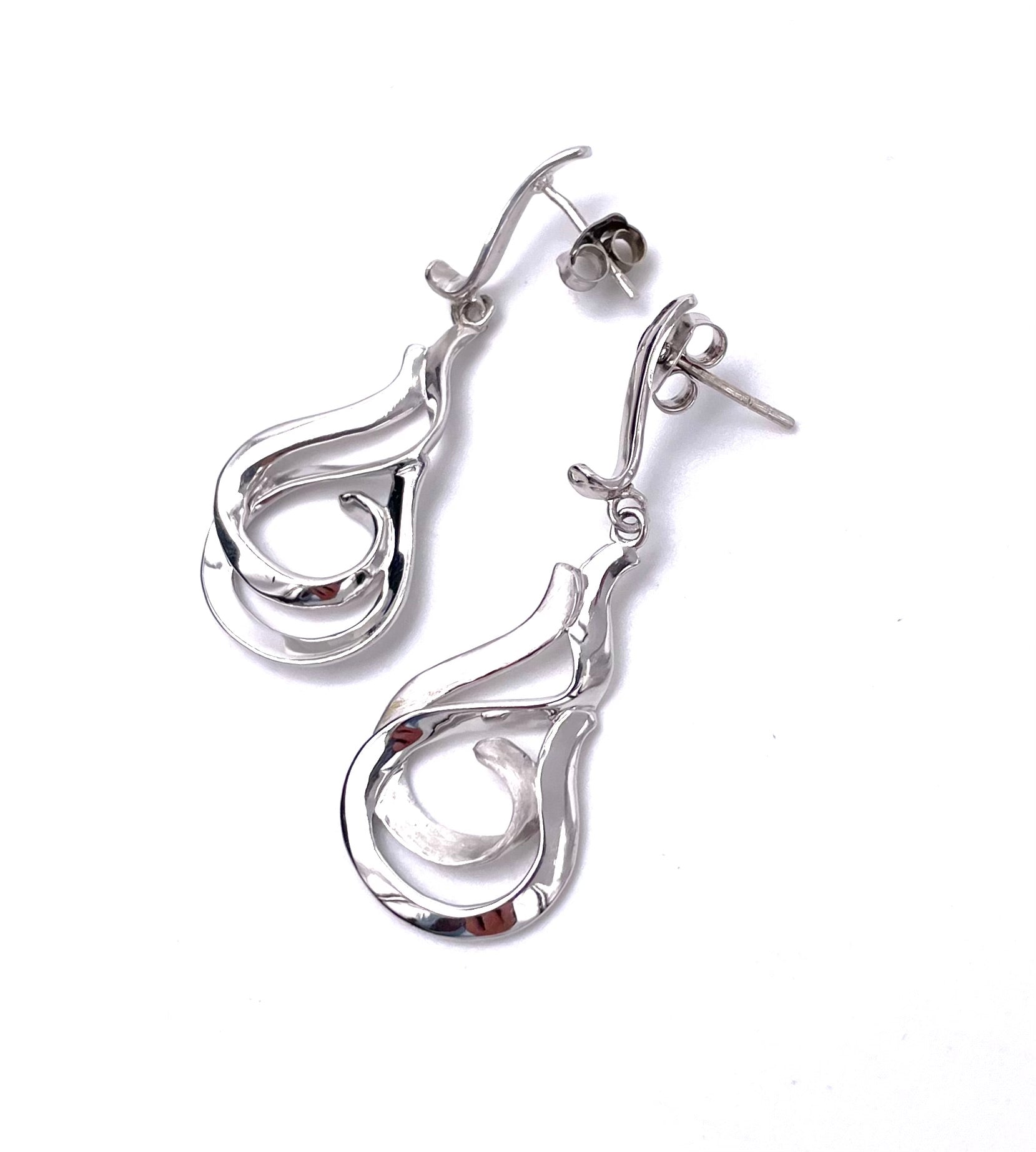 These post style dangle earrings were created with both a high polish and satin finish for an interesting design. They come from the Swing Collection by Jorge Revilla Spain. Retail price $280.00