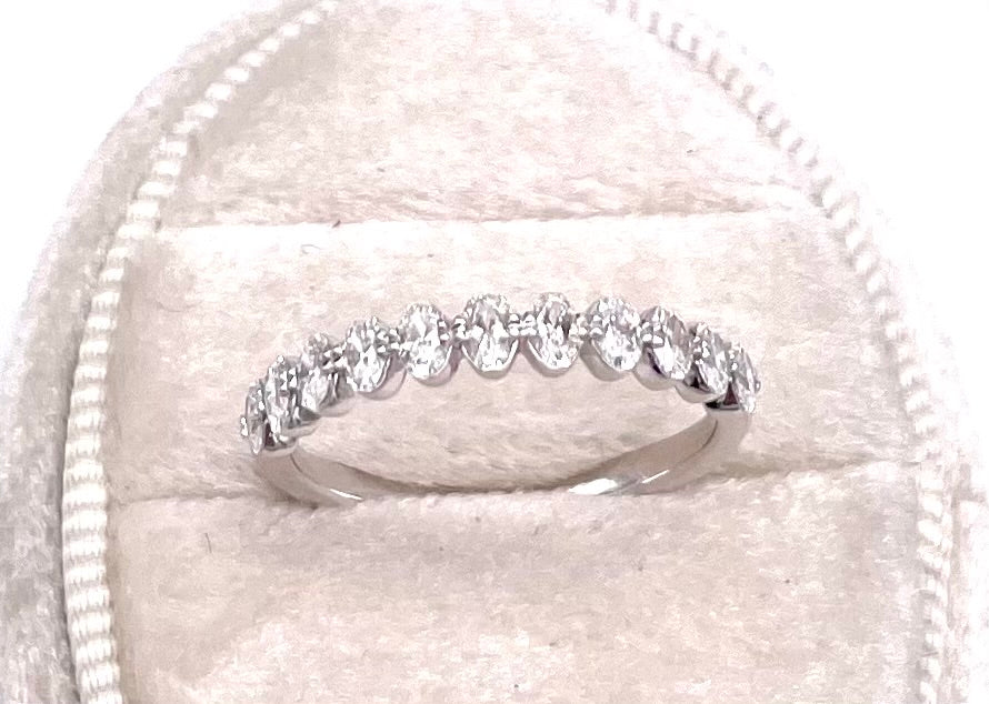 This beautiful diamond band was crafted from 18K white gold and has .55 carats of bright diamonds. Ring is currently a size 6.5, please inquire for further sizing. Retail price $3845.00